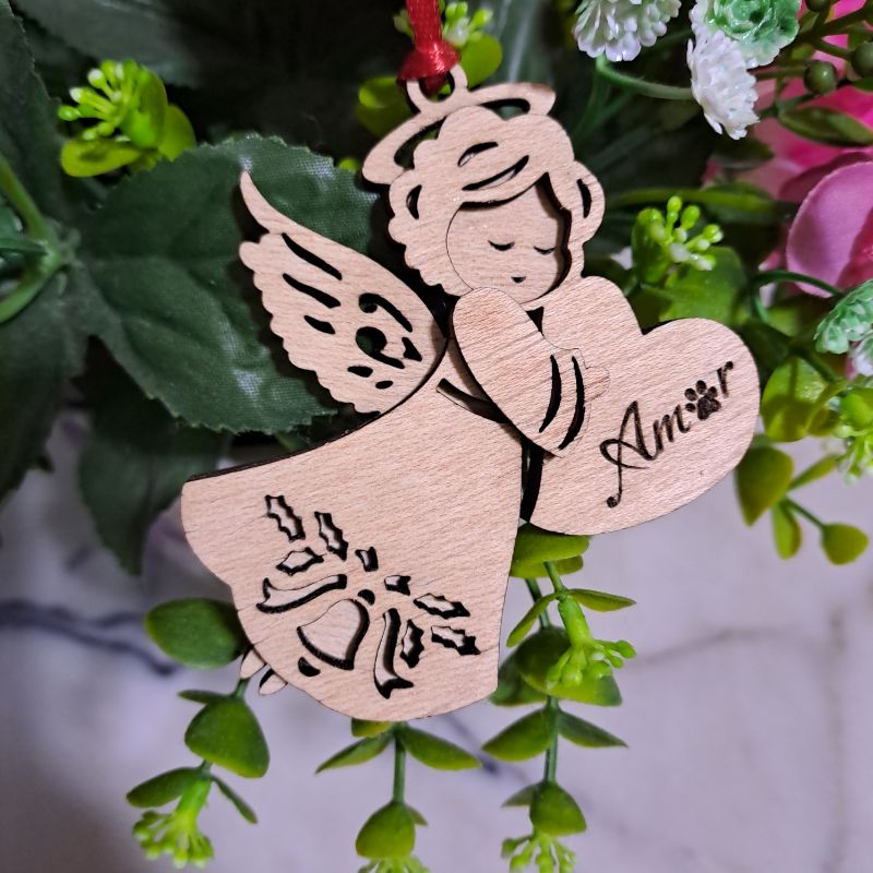 Anjinhos Solidários em MDF com coração com palavra personalizável