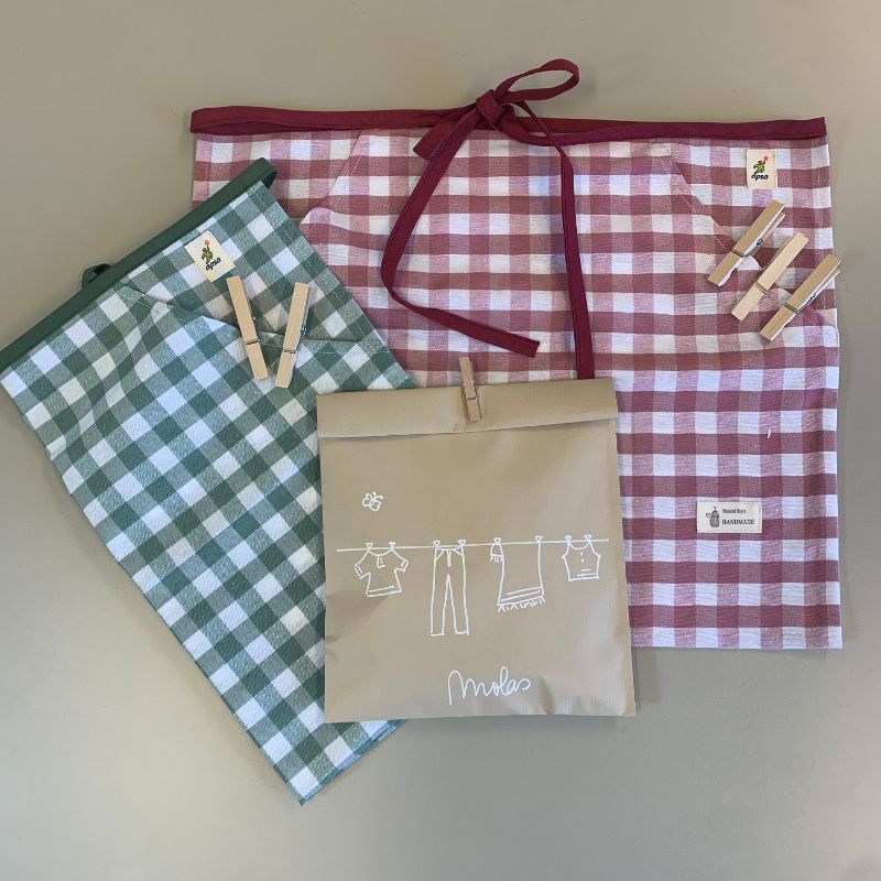 Prático para ter tudo à mão, este avental de cintura em tecido de algodão tem um bolso grande e vem com 12 molas de madeira incluídas.