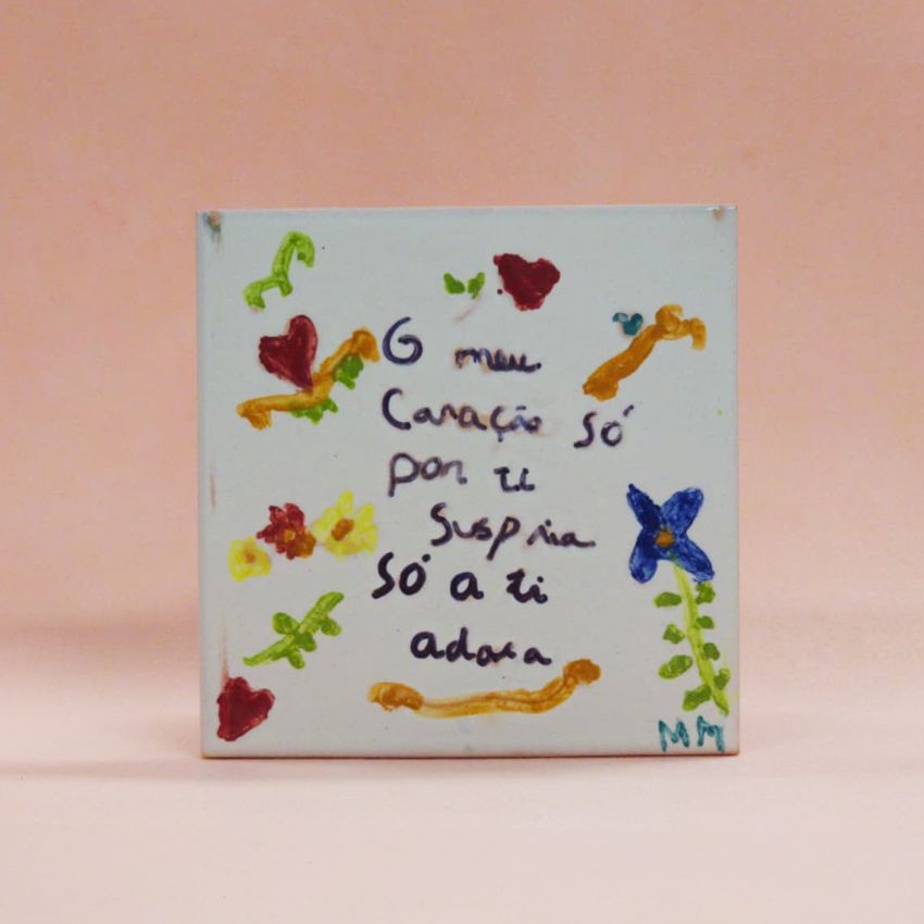 Estes azulejos são pintados à mão pelos autores e artistas da CERCICA Cooperativa de Educação, Reabilitação e Capacitação para a Inclusão em Cascais, na Oficina de Artes do Fogo.