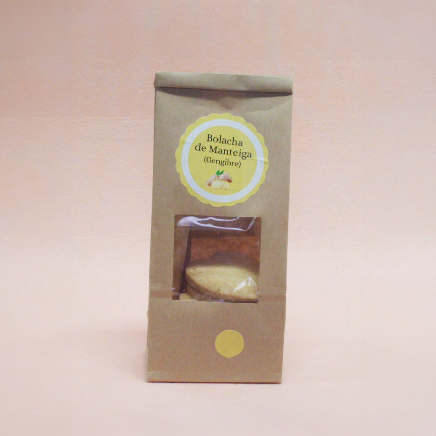 Bolachas artesanais de manteiga e gengibre (150 gr), preparadas com cuidado e dedicação na cozinha pedagógica do CACI – Centro de Atividades de Capacitação para a Inclusão da CERCICA.