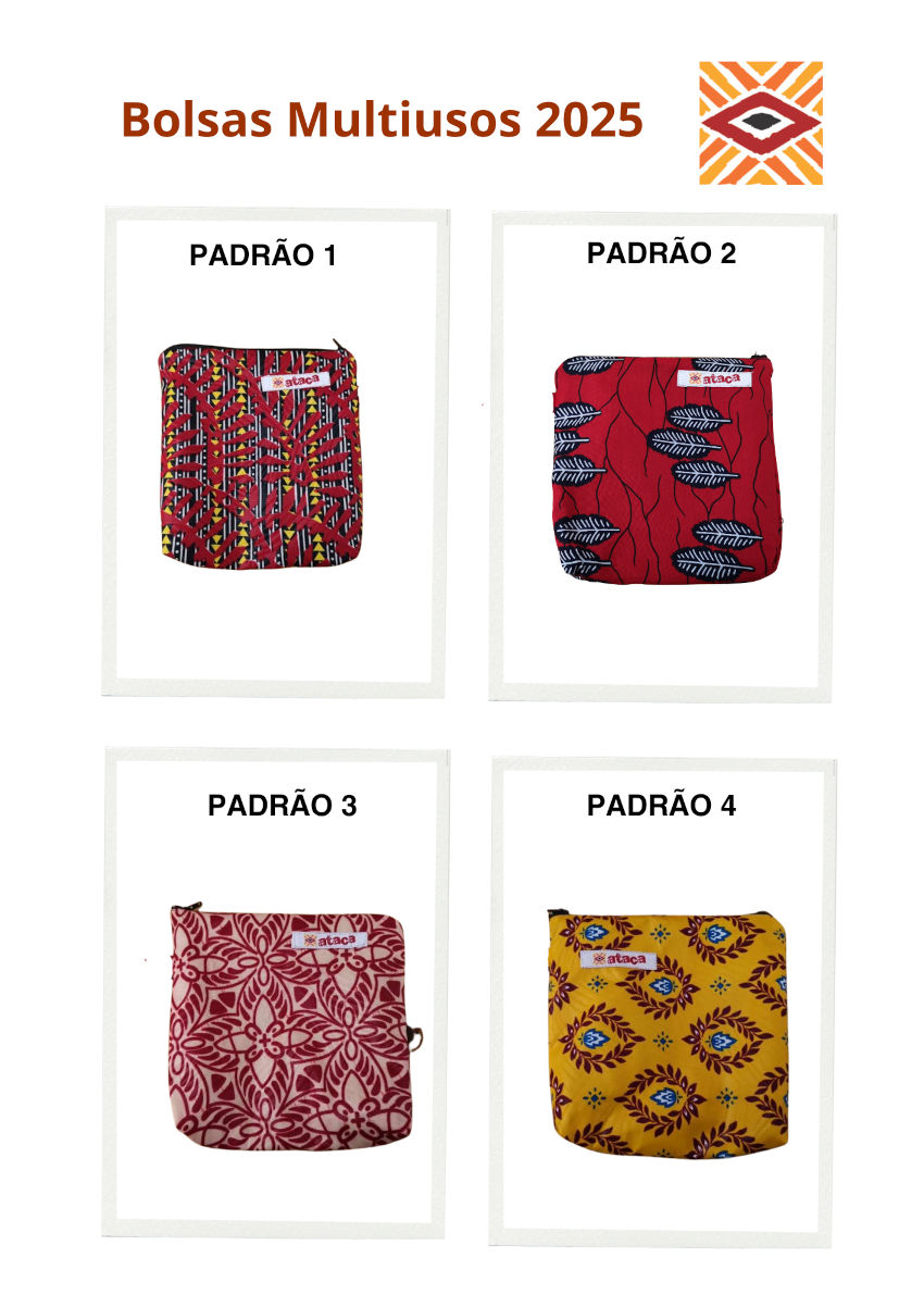 Bolsas em capulana multiusos, muito úteis para levar na carteira, podem ser usadas para guardar produtos de higiene (necessaire), maquilhagem ou como um estojo de tamanho grande.