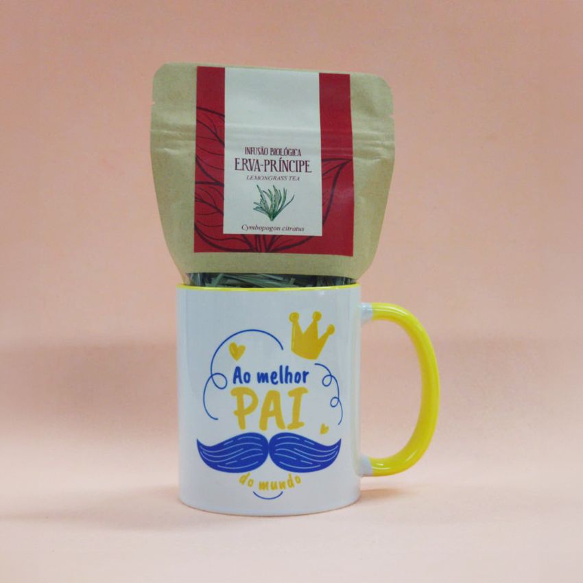 Conjunto Caneca Dia do Pai personalizável e infusão biológica (10g)