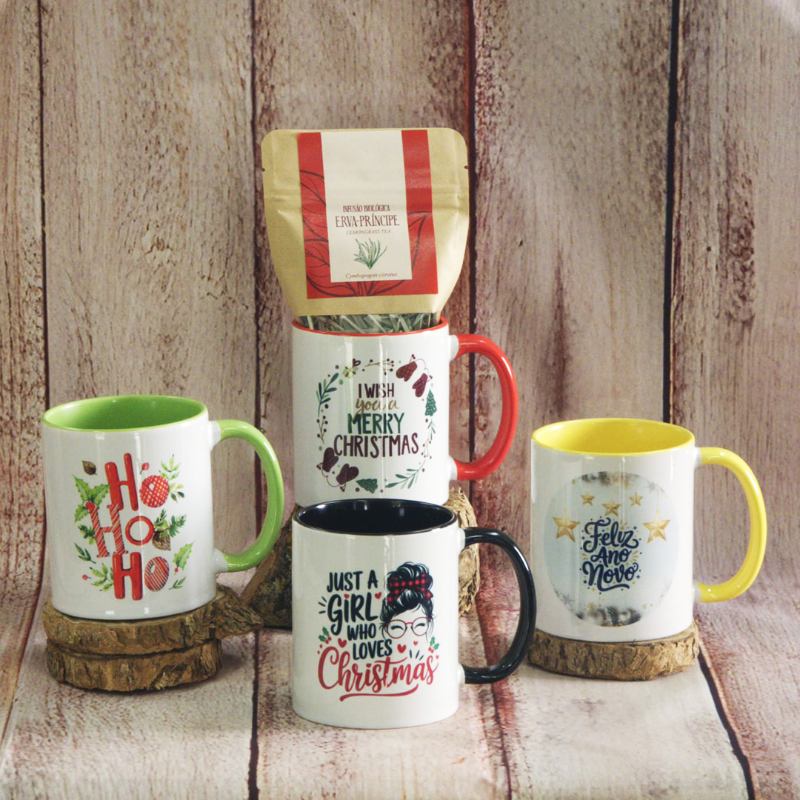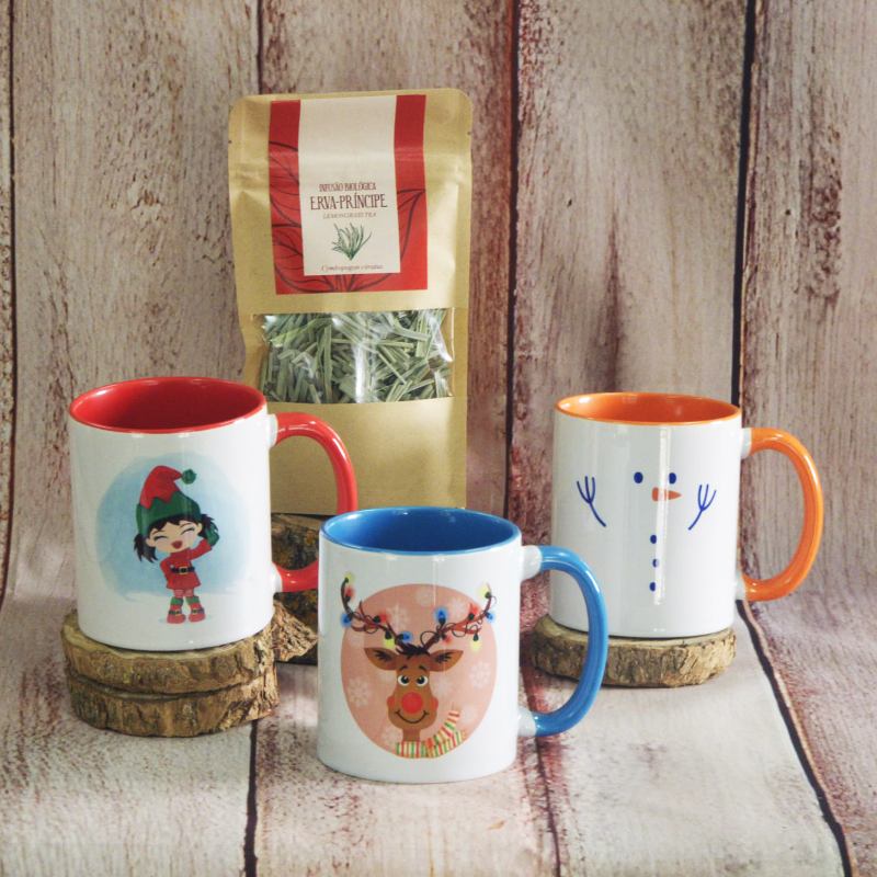 Pode solicitar personalização em canecas brancas (7,50€) ou em canecas com interior e asa coloridos (8.50€)