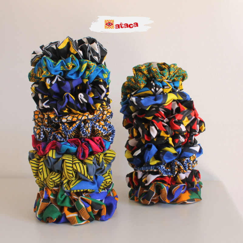 Elásticos de cabelo em capulana - ao comprar, está a ajudar a ATACA no combate à pobreza extrema de crianças africanas.