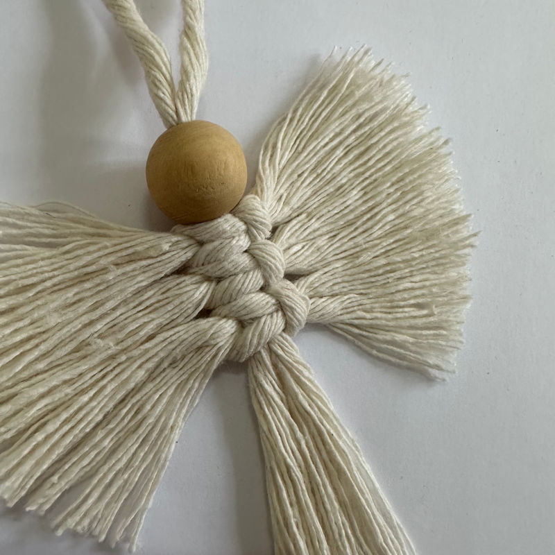 Enfeites artesanais para pendurar, em formato de Anjo, feitos em macramé
