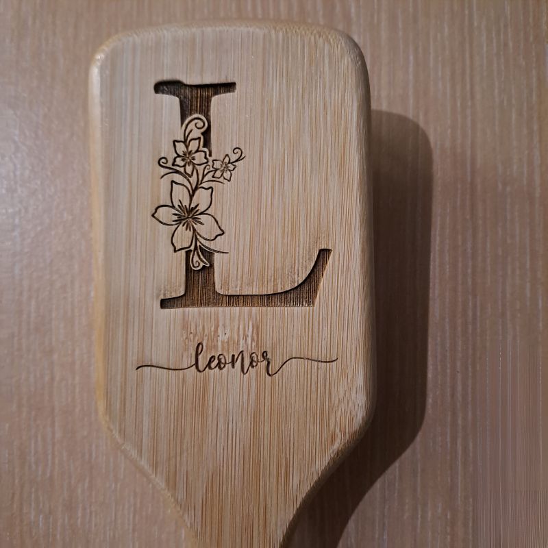 Escova retangular em bambu, personalizável com inicial e nome