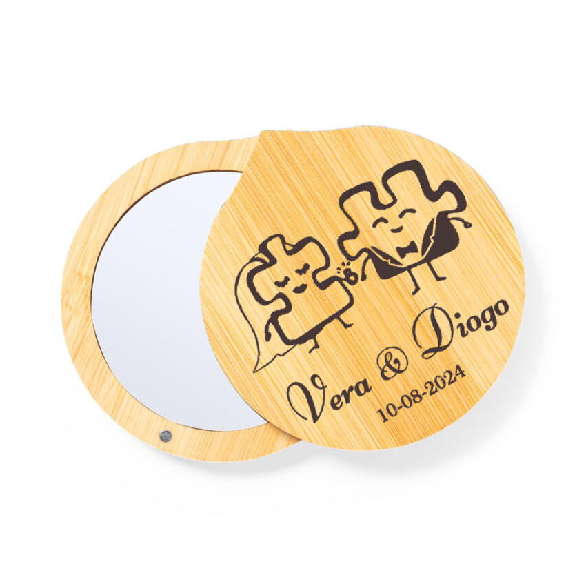 Espelho em bambu personalizável - ideia de lembrança para eventos