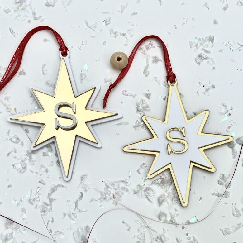 Adicione um toque especial à sua decoração com estas Estrelas de Natal, em acrílico com inicial personalizada.