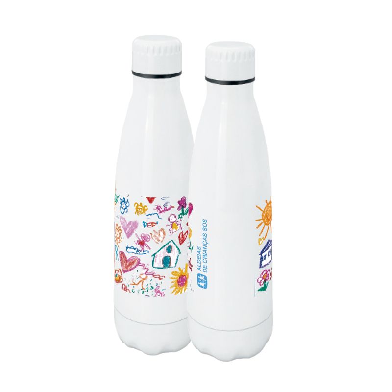 Prática para o dia a dia, esta garrafa térmica solidária mantém a temperatura das suas bebidas - e espalha calor humano.