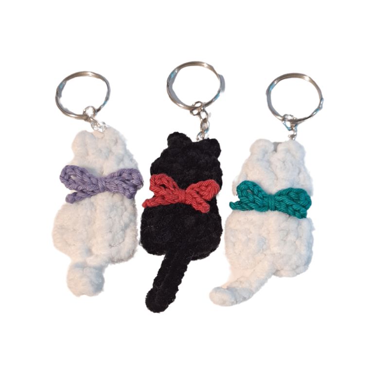 Porta-chaves de gatos com lacinhos – simples, elegantes e cheios de encanto, criados pela artista Happy Lil’Bina.