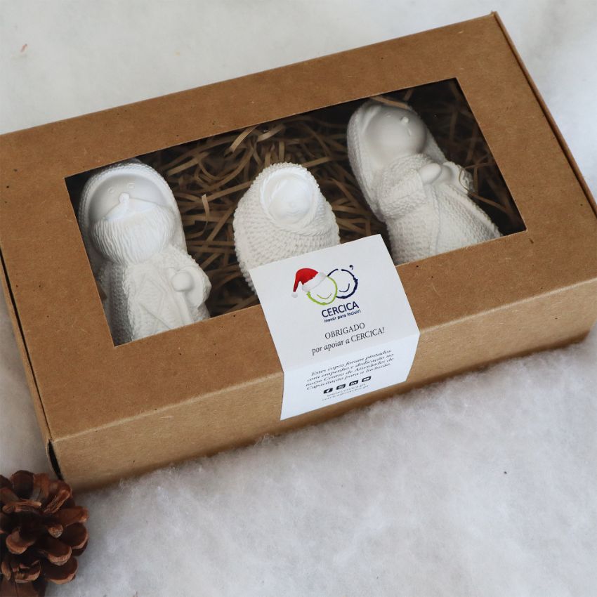 Presépio artesanal, composto por 3 peças em gesso: Maria e José (11cm) e menino Jesus (5cm) - criado no Centro de Atividades de Capacitação para a Inclusão da CERCICA.